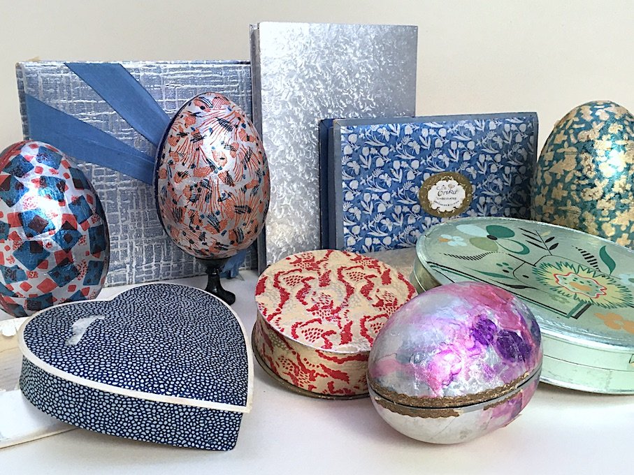 Von klassischen Papieren zum Buchbinden für Vorsatz und Einband bis hin zu geprägten Papieren für Schachtel- und Etuibauer, von alten bunten Geschenkpapieren bis hin zu früheren hauchdünnen Qualitäten an Wickel-, Stopf- und Packpapieren, findet sich alles was ich für meine Papierobjekte benötige.