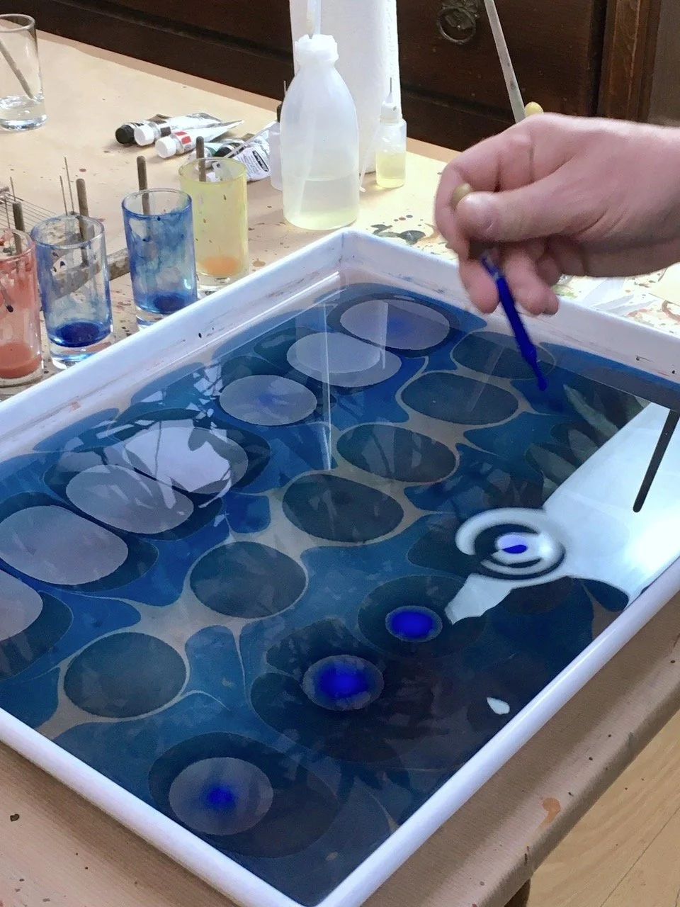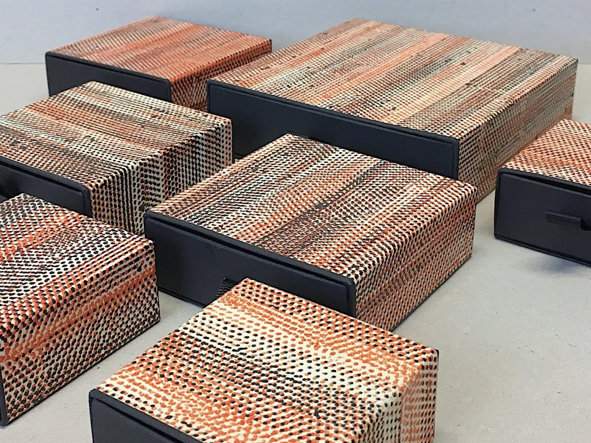 Der Künstler wird von einer unbändigen Leidenschaft für historische Muster, Buntpapiere, Lithografien, geprägtem Stanniol und Buchbindetechniken angetrieben, die ihn zu immer neuen Designs für seine eigenen Musterpapiere, Schachteln und Papier- Döschen inspiriert.